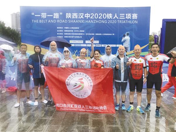 本报讯 9月20日,“一带一路”陕西汉中2020铁人三项赛在汉中市天汉文化公园鸣笛开赛。川汇区铁人三项运动协会会长王怀生带领10名周口“铁人”参赛,经过激烈角逐,周口女“铁人”高玉华斩获年龄组第五名;我市首次参赛的冯丽娟(女)、程莉(女)、王德明不畏强手、敢于亮剑,成功完成了自己的首次铁人三项比赛。