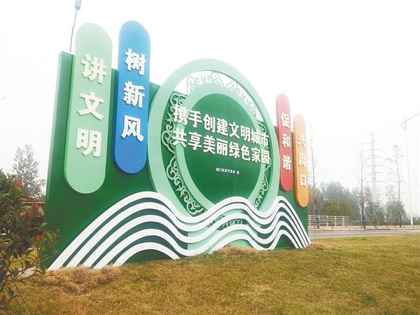 10月13日,记者在周口大道边看到一个写有“讲文明、树新风、促和谐、兴周口”的公益广告牌。如今,一个个造型精美的公益广告牌出现在中心城区,为“创文”营造浓厚宣传氛围的同时,也扮靓了城市。 记者 张洪涛 摄 ②2