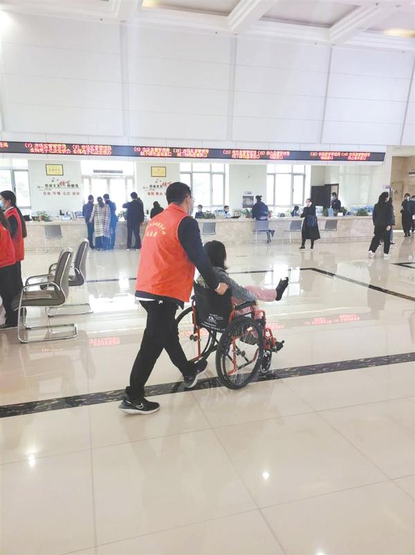 10月20日,市行政服务中心的志愿者为行动不便的办事群众积极做好志愿服务。①15记者 马月红 摄