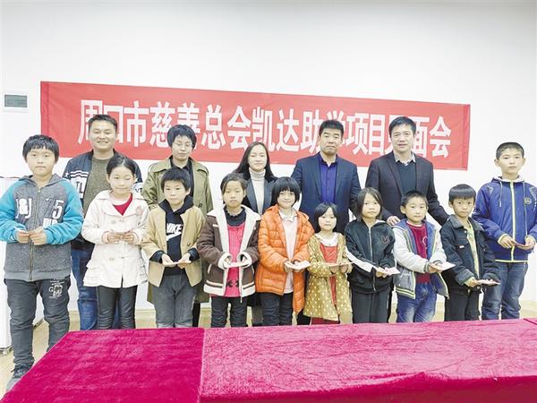 11月17日,市慈善总会、周口凯达房屋中介有限公司组织工作人员先后来到项城市孙店镇、商水县姚集镇,为20名困境儿童发放助学金2.4万元。据介绍,“凯达助学”项目成立于2018年,目前已资助困境儿童60名,累计发放助学金10.8万元。①15记者 窦娜 摄