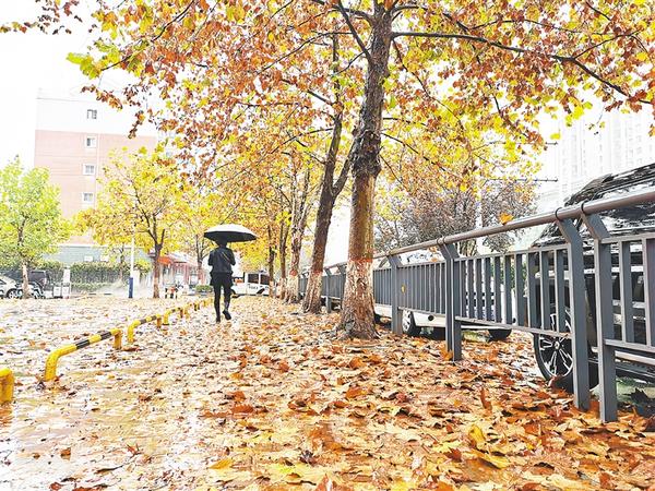 日前,我市迎来立冬后首场降雨,雨中的街头别有一番韵味。雨后气温明显降低,市民要及时做好保暖防护。②9记者 孙安平 摄