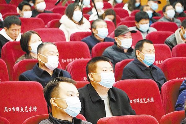 8日8时50分,记者来到位于文昌大道与政通路交叉口的周口市文化馆的群星小剧场,看到前来听讲的观众陆续入场,出于疫情防控常态化的需要,每名观众均需佩戴口罩、测量体温,且入场实行交叉隔座。