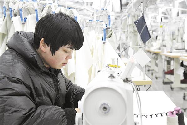 12月17日,在商水县产业集聚区雅戈尔盛泰纺织工业园一现代化车间内,纺织女工正在制作外贸订单服装。