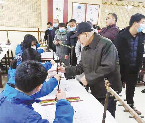 近日,河南省教育学会书法教育专业委员会“三笔字”写字板捐赠仪式暨周口书法教育研讨会在周口经济开发区实验学校举行。本次活动向我市捐赠1000套“三笔字”写字板,我市10所中小学接受了捐赠。市教体局基础教研室主任杨启宏为河南省教育学会书法教育专业委员会颁发捐赠证书。图为书法家为学生进行创作指导。