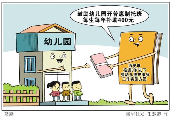 陕西省西安市近日出台《西安市推进3岁以下婴幼儿照护服务工作实施方案》,鼓励支持有条件的幼儿园开设普惠制托班,招收2至3岁的幼儿,市级财政每生每年给予400元的补助。新华社发 朱慧卿 作