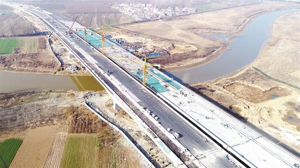 全长904.22米的新北环贾鲁河大桥作为新北环建设项目的重要节点工程,备受市民关注。目前,桥梁整体已成功合龙,左(南)半幅桥油面已铺设完毕,右(北)半幅桥油面正在紧张施工,预计本月底完工。记者 杜洪亮 房杰 摄