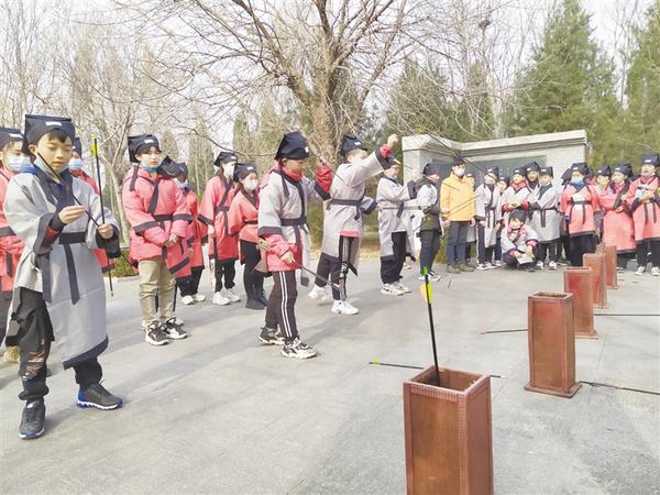 接着,师生们走进太清宫景区,在研学导师的引领下有序参观学习,并分组体验了射箭、投壶等项目。一名研学导师告诉记者,孩子们动静结合,在“玩”中寻求到问题的答案、感受到国学的魅力,对平时所学的国学知识有了更深的理解。