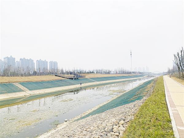 游览至流沙河河道边的玉盘落珠景观段,约160年树龄的市树——国槐屹立在广场上,向东走至亲水平台,站在亲水平台上可近距离观赏河面风景。在河道旁的木栏小道,一位市民正带着孩子游玩,“这里好漂亮、好好玩。”游玩的孩子嬉笑着说。“不仅有广场、亲水平台,前面还有紫竹林、塑胶跑道等休闲娱乐好去处。玉盘落珠景观段目前也处于管养阶段,春节期间应该会完全开放。”董帅兵说。