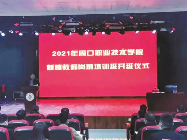 本报讯 近日,周口职业技术学院新入职教师培训开班(如图),该院党委书记刘士欣在开班仪式上作《践行立德树人,争做“四有”好老师》首场报告,各二级学院负责人及全体新入职教师参加了开班仪式和报告会。