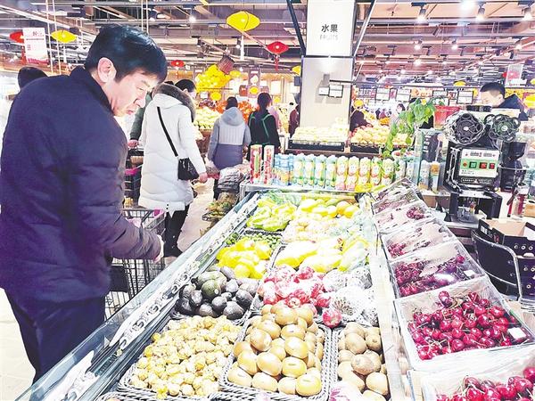 临近春节,我市水果市场迎来了销售的旺季,各大超市、水果市场内,水果品种丰富、供应充足,大部分国产水果价格都相当“亲民”。图为市民在选购水果。记者 孙安平 摄
