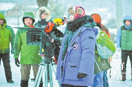 大鹏在《吉祥如意》中借助特殊的叙事结构,让影像和现实形成了奇妙的互文。在《如意》中,真实的王庆丽也现身了,这一部分的核心人物成了大鹏、王庆丽、扮演王庆丽的演员刘陆三人。大鹏通过《吉祥》塑造出一个困在血缘伦理中难以脱身的孝女形象,却又在《如意》中将其消解掉。“真假王庆丽”同框,制造出不少戏剧性的场面:譬如,刘陆一度忍不住质问王庆丽“为什么可以十年不回来”;在拍摄众人商量王吉祥去留问题的重头戏时,刘陆难以抽离角色,一度冲出拍摄场地痛哭,而此时镜头一转,真实的王庆丽却坐在一旁玩手机。