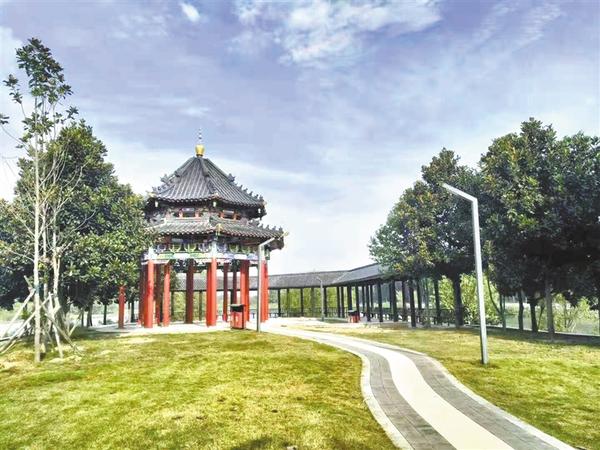 蒲苇水草,曲径小桥,俯瞰沙河湾湿地公园全景,宛若镶嵌在中心城区西部的一片翠玉。昔日垃圾遍地、灰坑臭水的西郊沙河湾,变成了周口秀美的“小江南”。