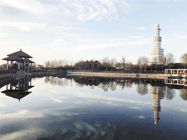 宽阔浩淼的水面、古香古色的船只、天空水中共徘徊的云影、充满艺术感的建筑、富有趣味的彩色沿湖跑道……初展姿容的永宁湖(原伏羲湖)湿地公园,吸引着众人的目光和脚步。
