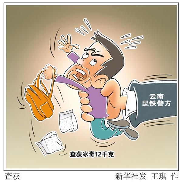 记者从云南省昆明铁路公安处了解到,昆明铁路公安处禁毒支队日前在昆明市官渡区某小区查获冰毒12千克,抓获一名犯罪嫌疑人。新华社发 王琪 作