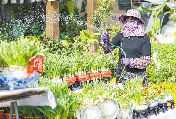 春节临近,在福建省漳州市的花卉市场,作为传统年宵花的水仙格外受到青睐,不少市民前来选购水仙花装扮家居,增添节日喜庆气氛。新华社发