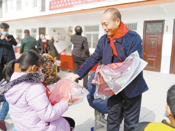本报讯 校服,对于在城里读书的孩子来说并不算什么,但对于很多在农村上学的孩子来说,却是一个大大的梦想。2月4日上午,在西华县艾岗乡半截楼小学“爱心校服”捐赠仪式上,已经放假的三年级学生卢仪涵又回到学校和90多名同学从周口市第四届人大代表方凯手中接到了一件新校服,圆了心中的校服梦。