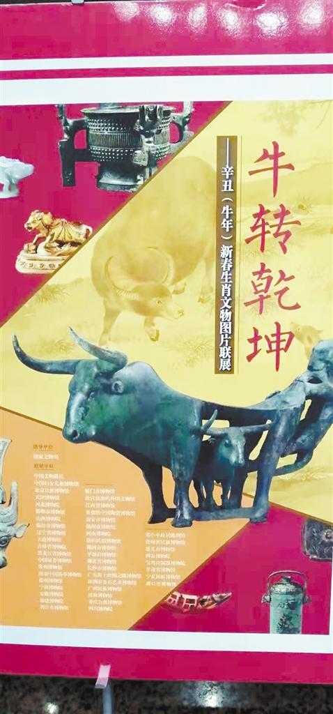本报讯 2月9日上午,为迎接传统牛年春节的到来,由中国文物报社与40多家文博机构联合举办的“牛转乾坤”——辛丑牛年新春生肖文物图片展在周口市博物馆向市民展出。