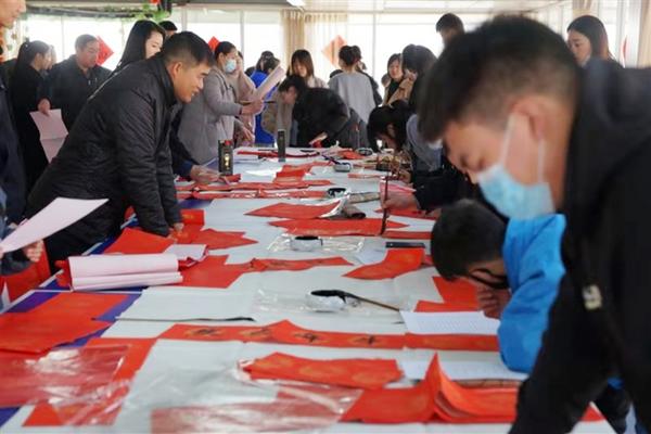 2月9日,项城市公安局在三楼大厅开展书赠春联活动,孙沄、闫永红等5名警营书法家和16名莲溪书院师生挥毫泼墨,现场为民警、辅警及工作人员义写春联、福字2000余套,受到了广大民警、辅警的热烈欢迎。