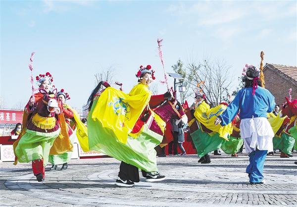 2月16日上午,来自市民协的艺术家在川汇区孙嘴村沙颍河生态谷里表演斗驴。春节假期,川汇区孙嘴村沙颍河生态谷里鼓乐喧天,热闹非凡,由川汇区委宣传部、市民协主办,川汇区文联、市民协灯谜专委会等单位联合举办的贺新岁闹新春民间文艺展演在这里举行,泥塑、剪纸、雕塑、版画、拓片等领域的艺术家参加了民间艺术展示,市民协的艺术家们舞狮、斗驴、马舞,以精彩的非遗技艺贺新岁、闹新年,表达对美好生活的赞美。记者 梁照曾 摄