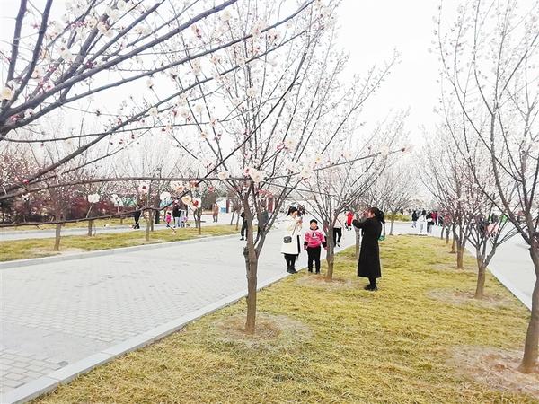 2月19日,市民带着孩子在淮阳梅园里拍照游玩。春节假期,阳光灿烂,新落成的淮阳梅园里腊梅等花相继盛开,该园湖水澄清,大白鹅引颈高歌,还有精致的木质栈桥等,一步一景,成为市民休闲游玩的好去处,众多市民呼朋唤友选择到此游玩,假期里该园每天都迎来大批到此游玩的市民。③6