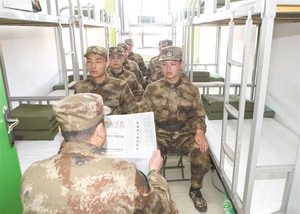 今年上半年的预定新兵役前训练,正值卫国戍边英雄官兵的先进事迹被新闻媒体宣传。沈丘县人武部抓住这一向“卫国戍边英雄”学习的好时机,组织应征青年观看前线“斗争”视频、缅怀英雄事迹、专题宣讲教育、讨论发言、签名、向英雄致敬等,对应征青年集中进行教育。