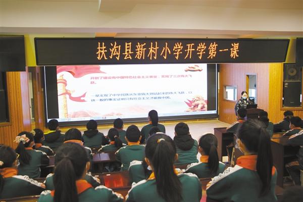 本报讯 3月1日,扶沟县中小学校、幼儿园正式开学。为激发广大未成年人爱党爱国爱社会主义爱家乡的热情,扶沟县教育体育局抽调专人精心制作了以“弘扬爱国主义精神”为主题的“开学第一课”。全县各级各类学校12万余名中小学生观看了课程。