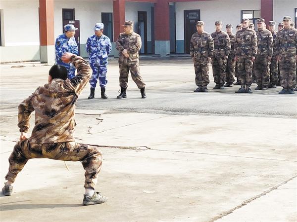 “报告首长,我叫赵三朋,毕业于武汉体育学院,武术套路、散打和兵器专业。”随后,赵三朋主动表演了一套传统武术套路(如图)。只见他一招一式行云流水,前后空翻收放自如,赢得战友们阵阵喝彩声,汤维政也禁不住连声称赞。