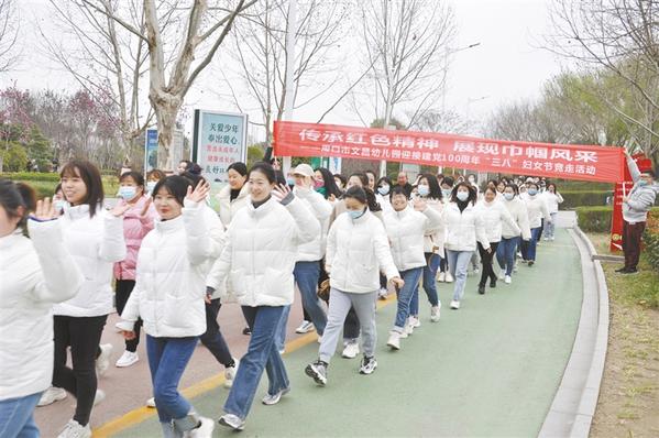 3月6日上午,周口市文昌幼儿园组织全体教职工在周口公园开展庆祝建党100周年暨“三八”妇女节竞走活动。“此次活动丰富了教职工的业余文化生活,展示了教职工们良好的精神风貌。今后,我们要继续立足岗位、努力奉献、创先争优,为幼儿教育发展做出新的贡献。”周口市文昌幼儿园园长刘梅表示。记者 刘华志 摄