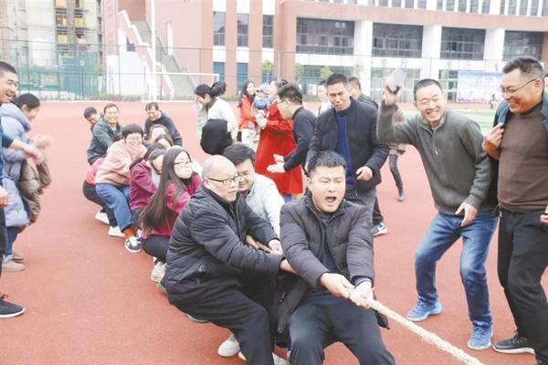 3月5日下午,周口经济开发区实验学校教职工在学校操场进行拔河比赛。为进一步丰富校园文化生活,推动体育活动开展,促进教职工体育锻炼,增强教职工身体素质,增进教师之间的团队凝聚力,提高工作热情和工作效率,3月5日下午,周口经济开发区实验学校在学校田径场举行第二届教职工趣味运动会。本次运动会,不仅展现了周口经济开发区实验学校教职工团结进取的精神风貌,缓解了学校教职工紧张的工作压力,也增进了教职工之间的沟通与交流,增强了教师队伍的凝聚力,促使大家以更加饱满的热情,向着更高更远的目标前行。通讯员 李涛 摄