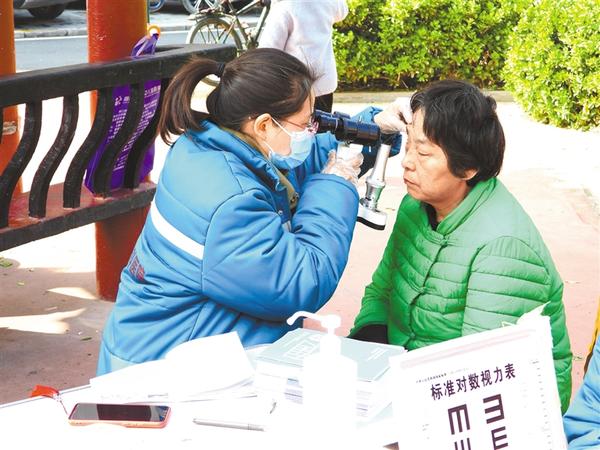 活动现场,医护人员为市民免费测量血压、血糖,检查视力、针灸等。在义剪区,志愿者戴着口罩,拿着剪刀和梳子精心为市民修剪头发,有不少市民在排队等候。考虑到有些老人行动不便,志愿者在物业管理人员的带领下,还特意上门为他们理发。