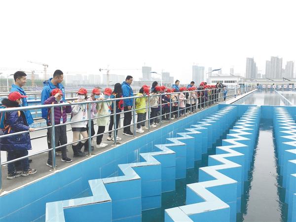 本报讯 3月13日下午,来自周口盛和小学的30余名周口报业小记者走进周口银龙水务有限公司东区水厂,小记者近距离地参观自来水生产过程,了解制水工艺和有关用水常识,见证“一滴自来水的旅行”。