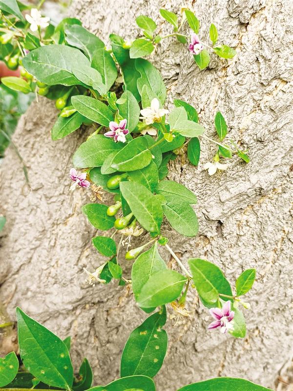 单位一棵高大的香樟树旁有一株枸杞,每次园中绿化树被修剪得整整齐齐,枸杞也会失去部分的枝叶和花朵——因为它就躲在绿化树的枝叶间。不开花、不结果时,总是很难想起,也很难找到它。但我知道,虽历经劫数,它始终都在。每次看到它在异类的夹缝中开出花儿来,都觉得那是它明亮而调皮的微笑。