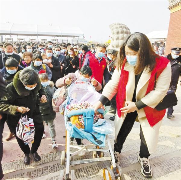 二月二朝祖会开幕以来,淮阳区众多单位的志愿者纷纷走进太昊陵景区、走上街头,或帮游客指路,或开展路段保洁和设施卫生工作,或提供开水等,那一抹亮丽的红色,成为一道流动的风景线。