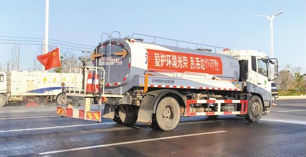 3月22日上午,记者在商水县溵川大道东段拍到一段洒水车作业的画面,画面里洒水车匀速行驶着,当洒水车走近,听到洒水车上传出《歌唱祖国》的曲子。当洒水车路过溵川大道与八一大道交叉口处时,记者看到等红灯的市民跟着《歌唱祖国》的曲子唱了起来:“五星红旗迎风飘扬,胜利歌声多么嘹亮……”