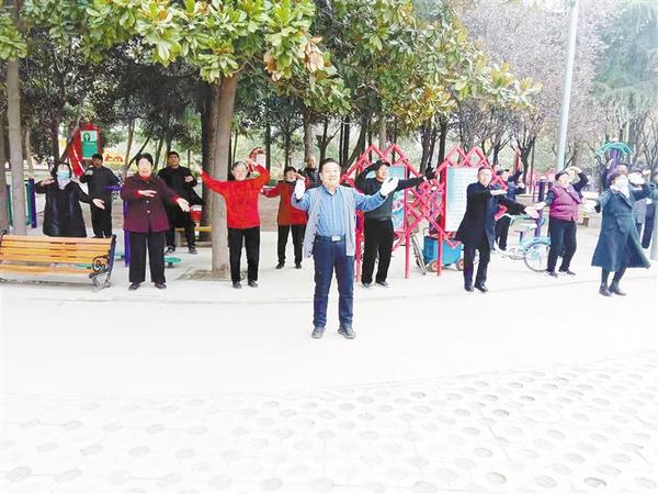三月的太康县休闲广场,桃红柳绿,嫩叶渐舒,来此游玩的人们络绎不绝。其中一支有200余人的“夕阳红”健身团格外引人注目。“双手举起,向上伸直,向下弯腰……”每天上午8时,这些老人们踏着音乐的节拍,在此做操锻炼,脸上洋溢着幸福的笑容。