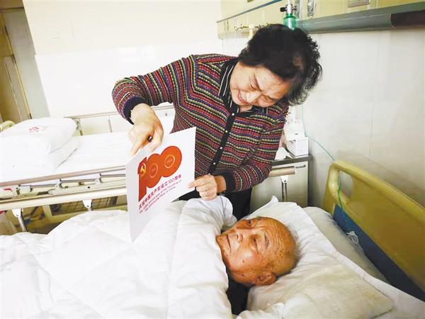 本报讯 3月29日,周口市中心医院心内科医生孙飞为老人拆线,百岁老人高魁心脏起搏器置换术圆满成功。