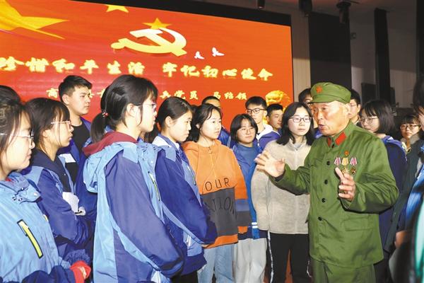 4月2日,商水县退役军人事务局、商水一高特邀我市参战老兵、全军英模代表、双二等功臣马绍领到商水一高,为1000多名高一学生上了一堂生动的爱国主义主题党课。马绍领结合自己参加对越自卫反击战的亲身经历,把大家带进了那段炮火连天、刻骨铭心的峥嵘岁月,生动地再现了中国军人不屈不挠、忠心报国的英雄事迹,现场数次报以热烈掌声。高一(6)班学生胡昀昕动情地说:“愿意为国家牺牲奉献的人,才是伟大的英雄,这才是我们该追的星。”今年是建党100周年,商水县退役军人事务局联合商水一高相继开展了学党史、讲好老兵故事等活动。②8记者 付永奇 通讯员 张千 摄