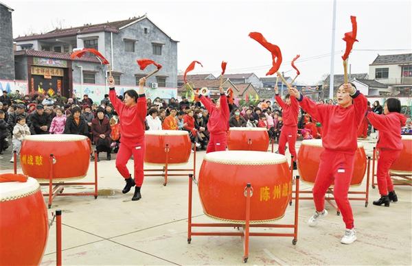 4月6日上午,商水县黄寨镇王潭行政村腰鼓队在村文化广场排练节目。该村近日利用清明节外出返乡人员增多的机会,成立乡贤会,组织捐款20多万元,作为乡村振兴基金,专项用于村内环境整治、扶弱济困、文化娱乐等。受到资助的村腰鼓队成员表示,要继续打好锣、擂响鼓,助力乡村振兴。记者 付永奇 摄