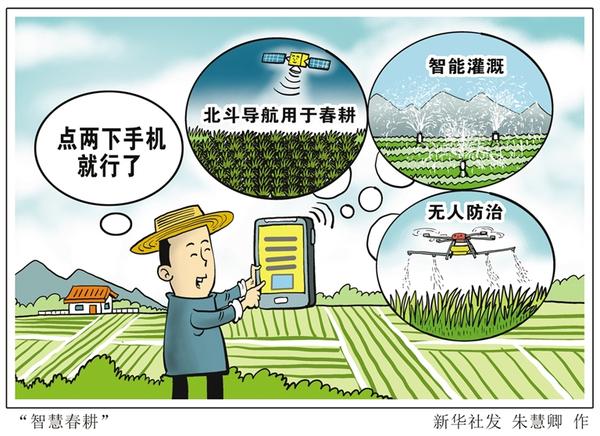 无人驾驶智能插秧机、智能化叶龄诊断、智能化浸种催芽、智能化控制灌溉……记者近日走访黑龙江、山东、湖南、安徽等部分粮食主产区,“智慧春耕”让地变“聪明”人变“懒”,手机成新农具,有的种粮大户成了“按一下按钮”“点两下手机”的“配角”。 新华社发 朱慧卿 作