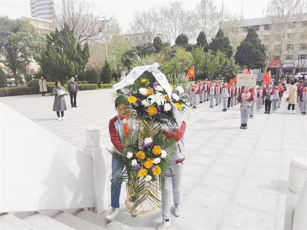 3月30日,周口榆树园小学组织少先队员、班主任和党员代表到周口市烈士陵园瞻仰烈士墓,敬献小白花,缅怀先烈丰功伟绩。该校校长马建党希望全体少先队员继承革命烈士遗志,从小树立远大理想,传承红色基因,为了祖国更加强盛、家乡更加繁荣而奋发图强。 通讯员 雷灿 摄
