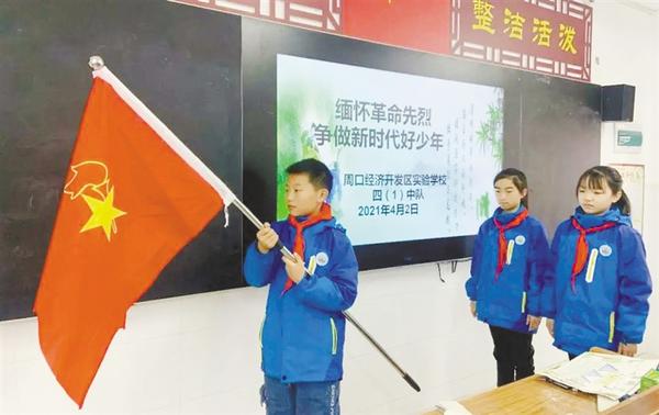周口经济开发区实验学校少先队大队部组织各中队举行“缅怀革命先烈,做新时代好少年”主题班会
