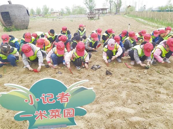本报讯 4月11日,100多名周口报业小记者走进建业绿色基地,亲近自然,体验种菜之乐,经历了一场别样的“农耕+军事”研学之旅。