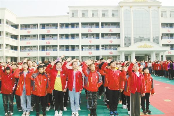 活动开始后,该校国旗护卫队的队员昂首挺胸,迈着铿锵有力的步伐,护卫着神圣的国旗缓步入场。在雄壮豪迈的国歌声中,鲜艳的五星红旗徐徐升起。