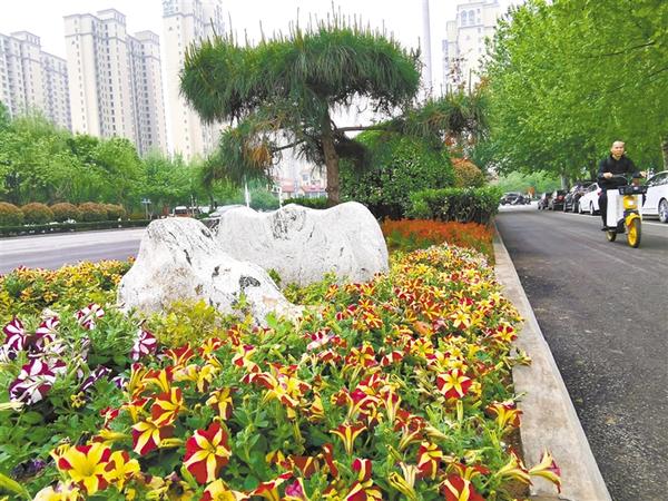 近日,在我市大街小巷,到处都能看到花团锦簇、绿树成荫,一派生机勃勃的景象。 城区道路的绿化普及率越来越高,城市道路变成一条条绿色走廊。 近年来,我市大力推进公园、游园、广场等公共绿地建设,实施“拆墙透绿”,人行道变景观绿道;建设小游园、口袋公园,让城市“零碎地”变成小景观;到处可见“人在街上走,如在画中游”的景象。园林城市的迷人风彩正在显现,触手可及的风景让市民幸福感倍增。记者 孙安平 摄