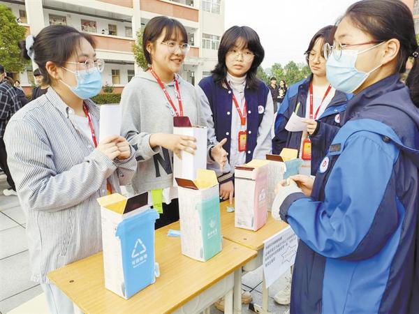 本报讯4月26日,周口恒大中学团委开展以“践行垃圾分类 守护美丽地球”为主题的垃圾分类宣传活动,以答题进阶游戏的形式,向学生普及垃圾分类知识。