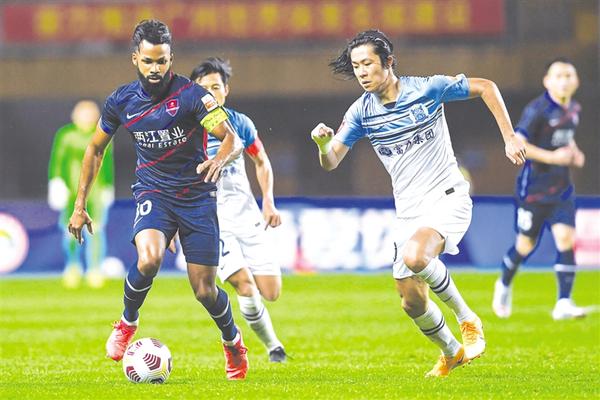 当日,在2021赛季中国足球协会超级联赛(广州赛区)第二轮比赛中,广州城队以3比1战胜重庆两江竞技队。