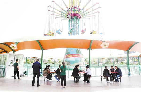 本报讯 为保障“五一”期间特种设备安全运行,给广大市民创造一个安全、舒适的游乐环境,4月30日,周口市市场监管局联合周口野生动物世界一起开展高空飞翔大型游乐设施应急演练(如图)。