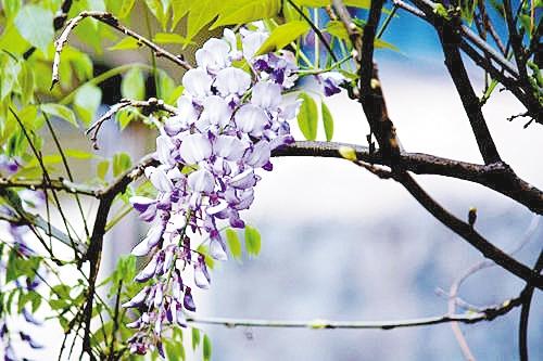 可惜好花不常开。过不了多久,紫藤花谢,便会向外无限拉长生命的空间,有点依附物便会攀上去。驻足在藤架下,向上望去,藤条蛛网一样盘根错节,很难觅到一块闲置的空间,这正是紫藤的追求所在,不给生命留下空隙。