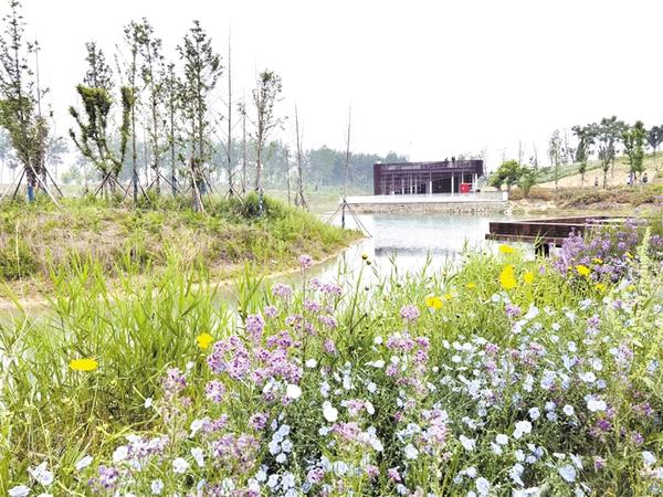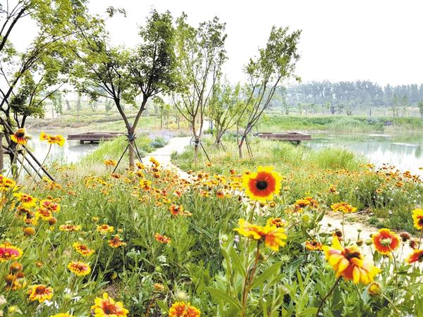 蓝花矢车菊、金鸡菊、石竹、蓝亚麻、虞美人、大波斯菊、睡莲……色彩斑斓,犹如大自然的调色盘。花儿溢出的清香,沁人心脾。你很难想象,此处原是百亩的废旧灰坑。因为不是节假日,所以游人并不多,三三两两的市民结伴而行,徜徉其中,怡然自得。“现在咱周口风景就可美,周末一定要带孩子来看看。”