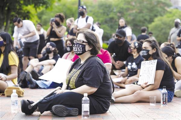 当日是非洲裔美国人乔治·弗洛伊德遭明尼苏达州白人警察“跪颈”执法致死一周年,美国多地举行悼念活动。新华社记者 刘杰 摄